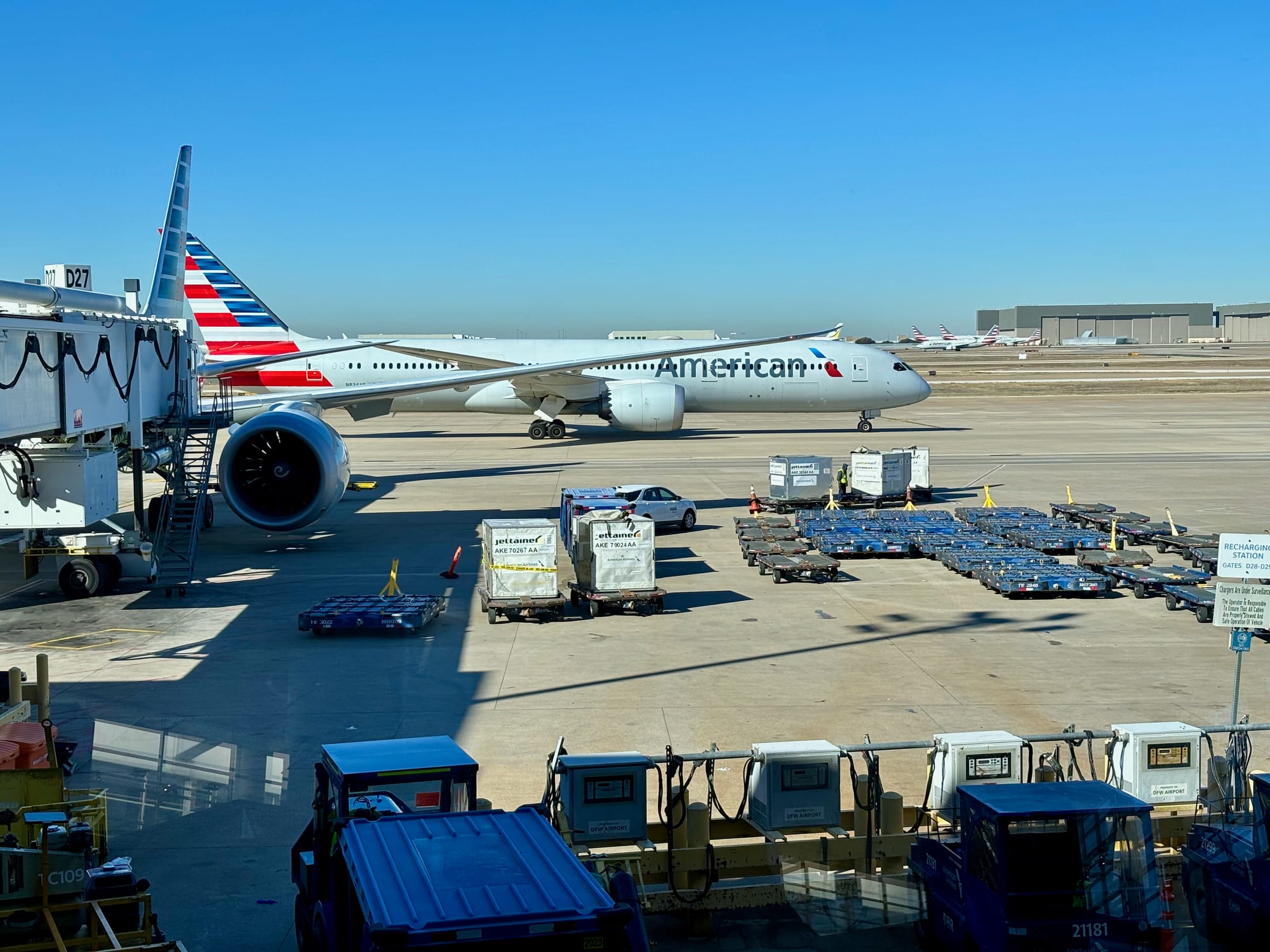 O que fazer num voo de mais ou menos 13h de duração? De todas as possíveis opções eu bem que tentei dormir um pouco, e até consegui por breves momentos, mas tecnicamente era dia ainda, e meu organismo simplesmente não queria dormir — Sem contar que já havia dormido até que relativamente bem no voo de SP para Dallas, considerando as condições é claro. Passei basicamente o tempo todo ouvindo músicas e assistindo os filmes que as outras pessoas estavam assistindo. Uma pessoa na minha frente assistiu 1917, depois foi pra Top Gun, depois foi pra outro filme que não sei o nome mas que o elenco contava com Jenifer Aniston, Ben Affleck, Scarlett Johansson, depois começou a ver Top Gun 2. Na minha esquerda algumas filheiras pra frente outra pessoa assistia uma série/documentário aparentemente sobre futebol americano, e assim o tempo foi voando.