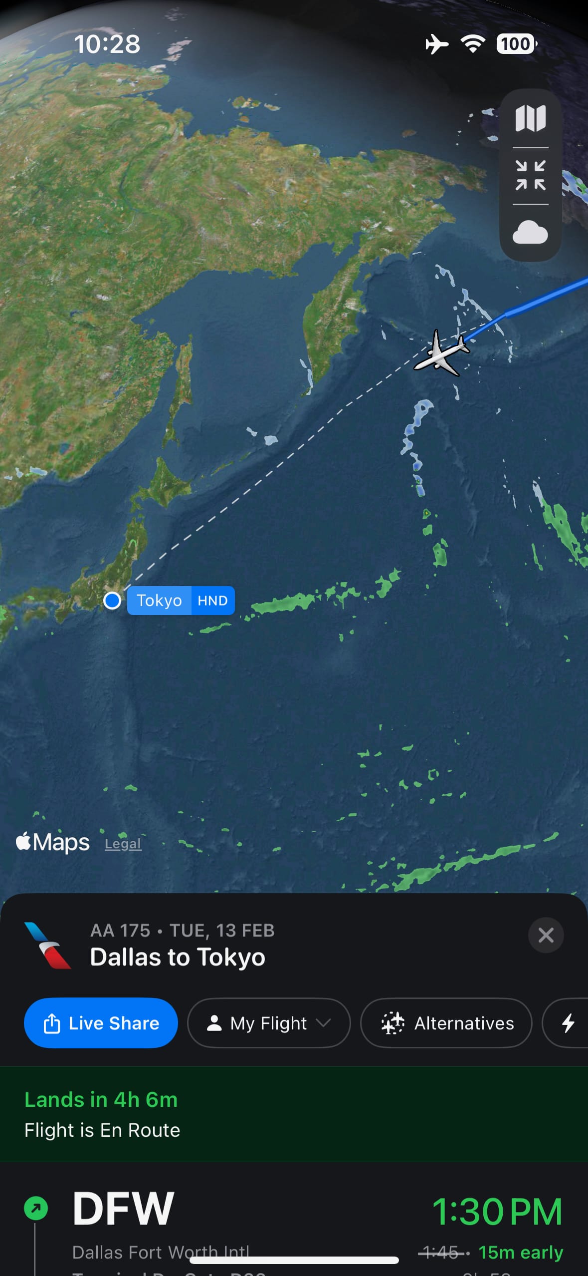 Faltavam aproximante umas 4h para o avião chegar em Tokyo, tirei a screenshot abaixo:
